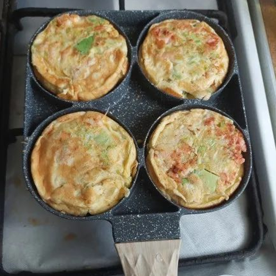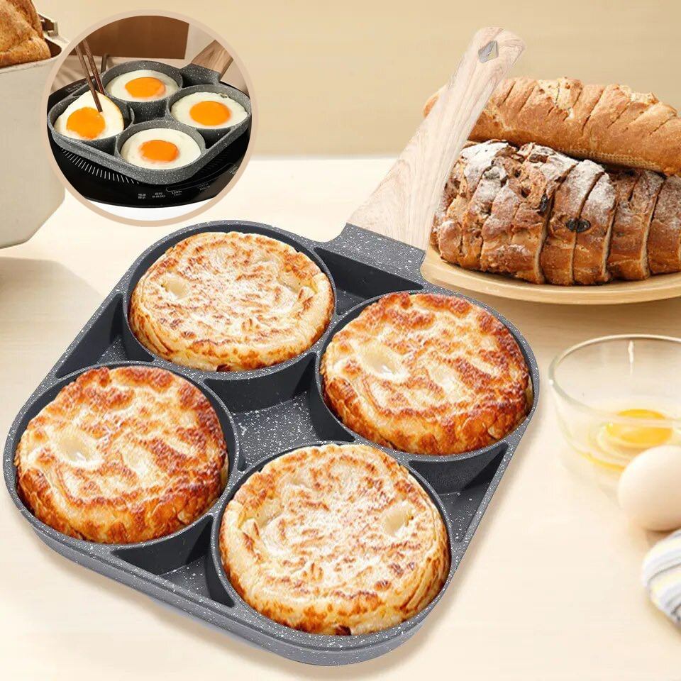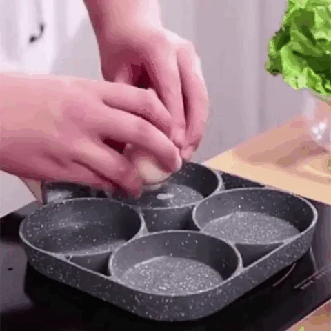 Завдяки чотирьом вбудованим отворам на поверхні сковороди, ви можете одночасно готувати чотири смачних омлети, економлячи час і енергію! Це особливо корисно у ранковий час, коли кожна хвилина має значення!